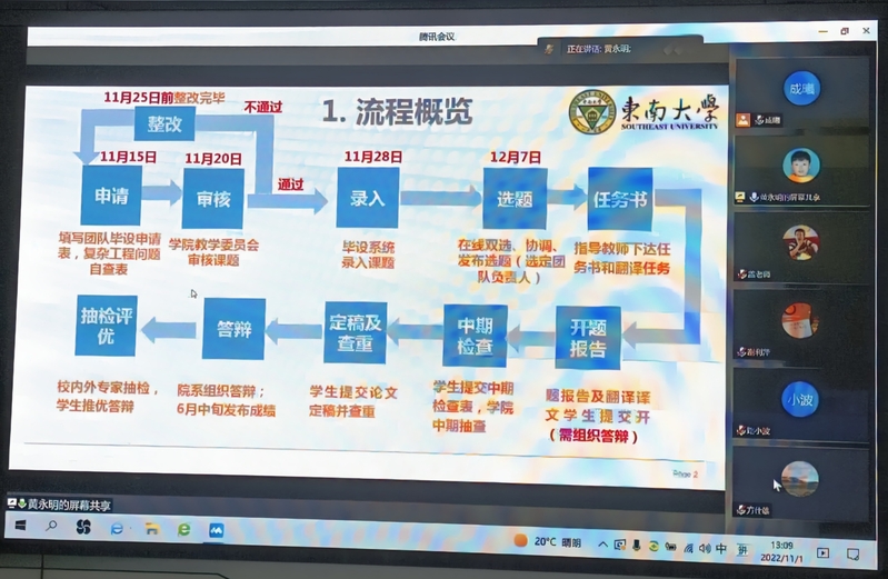 2022年11月1日中午,肉漫屋 在中心楼教育部重点实验室会议室,面向学院老师,召开本科毕业设计改革说明会。会议采取线上线下同步进行的方式,到会人数超过50人。会议由张亚副院长主持。