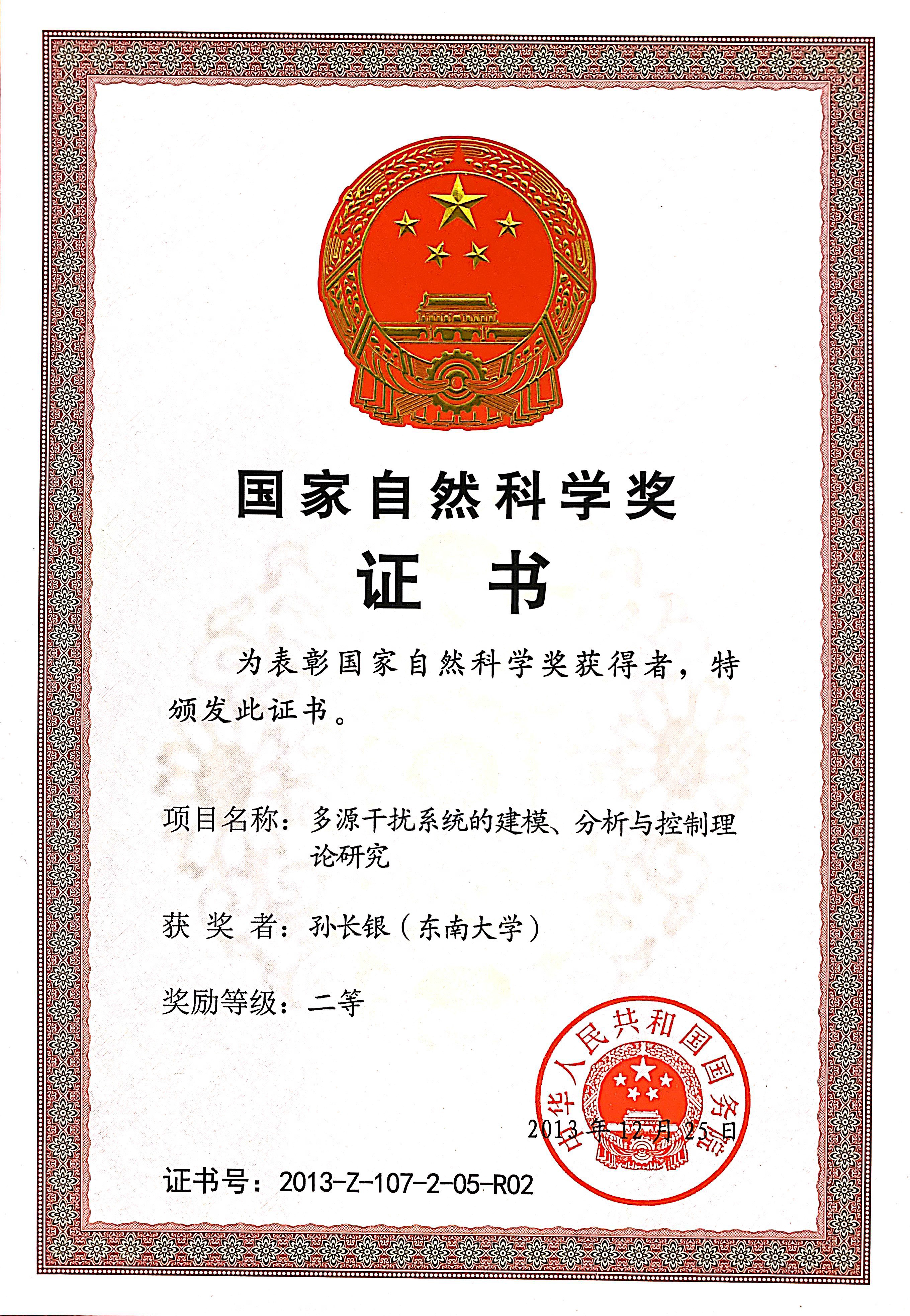 2013年:12月,肉漫屋 孙长银教授与北京航空航天大学的郭雷教授共建的课题组项目“多源干扰系统的建模、分析与控制理论研究”荣获国家自然科学二等奖。