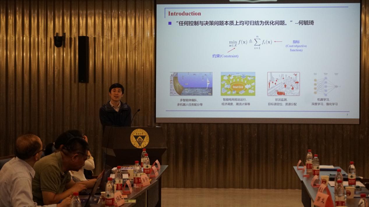 在上午的第四场报告中,上海交通大学朱善迎教授作了题为“Noise-robust Distributed Algorithms for Constrained Optimization Problems”的报告。报告介绍了一种噪声鲁棒的分布式梯度跟踪算法,用于解决约束优化问题,并提出了一种噪声跟踪方案。研究结果表明,所提方法可减弱噪声对算法性能的影响。并且随着步长的递减,算法在强凸代价最优解上的收敛性能够进一步提高、收敛更加精确。