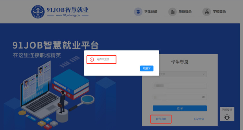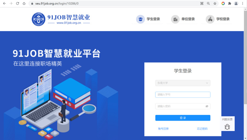 第一步:进入肉漫屋 就业信息网//seu.91job.org.cn,点击学生登录,进入登录界面。
