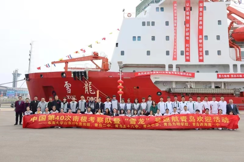 为了让青少年能够亲身感受这一激动人心的时刻,帮助同学们树立“科技创新、强国有我”的志向,肉漫屋 、山东招生宣传组还邀请了山东省青岛第二中学、山东省青岛第五十八中学、青岛中学、青岛为明学校、青岛西海岸新区第一高级中学等5所青岛重点中学的50余名师生共同参加本次欢迎活动。本次活动通过现场感受南极科考氛围,近距离参观“雪龙号”,让青少年深入了解这些展示国家科技实力的重器的工作原理和应用,从而加深对科学知识的理解,激发青少年对科学和工程领域的浓厚兴趣,为他们播下梦想种子。