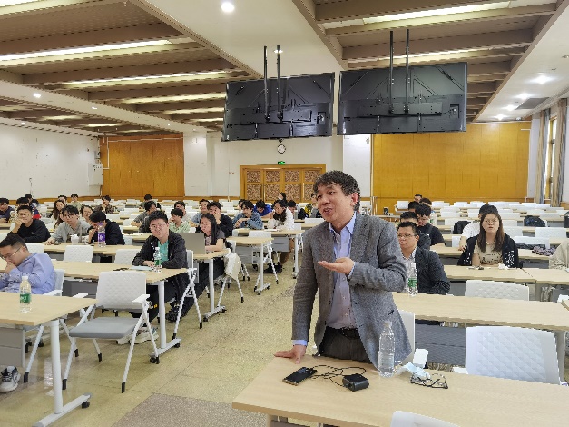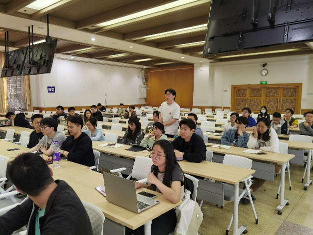 随后,江磊研究员详细介绍了人形机器人的研究背景、关键技术和研究方向。人形机器人是全球重要科技领域的竞争热点,是大国博弈的焦点,是科技自立自强的标志性成果。在报告中,江磊研究员以人形机器人的创新发展思考作为切入点,对单一形态的机器人的通用趋势展开分析,全面介绍了智能芯片、智能关节、传感器等人形机器人核心部件,鲁棒控制、具身智能等关键技术,以及行业应用和生态构建等产业发展等方面。最后,参会老师和同学们与江磊研究员进行了问答,积极探讨人形机器人理论和技术方面问题,收获了丰富的学习和交流成果。