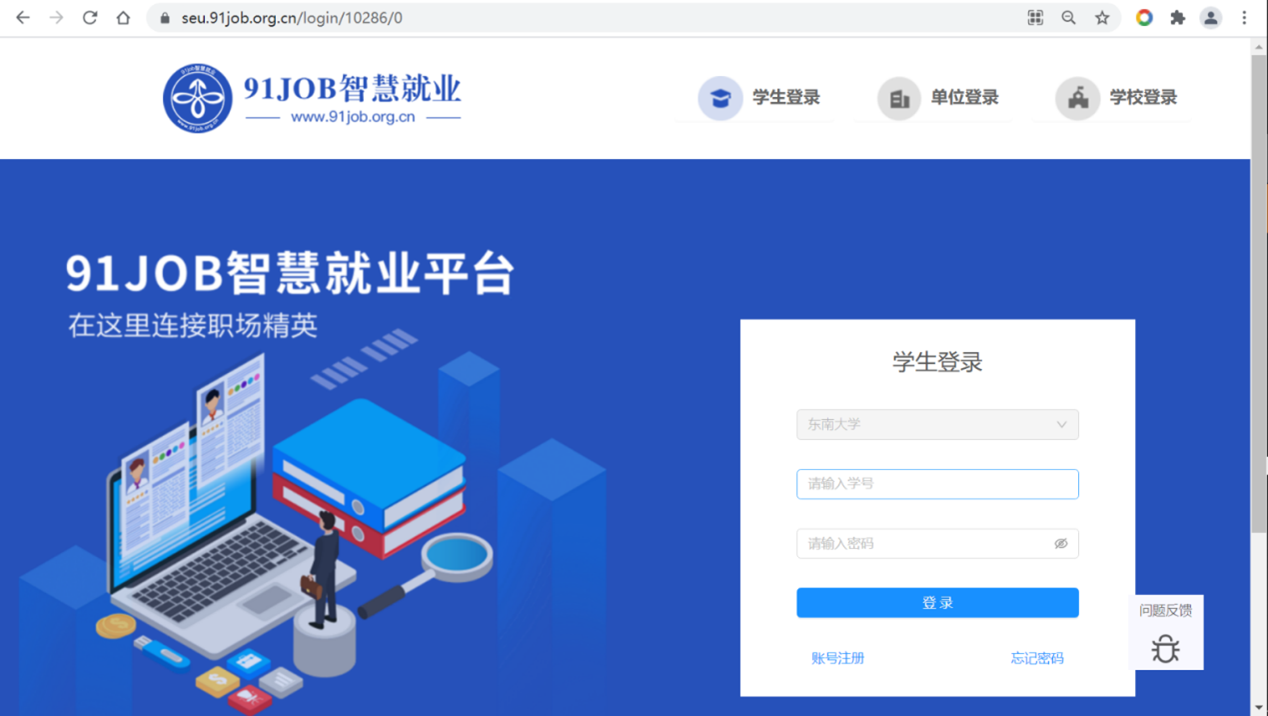 第一步:进入肉漫屋 就业信息网//seu.91job.org.cn,点击学生登录,进入登录界面。