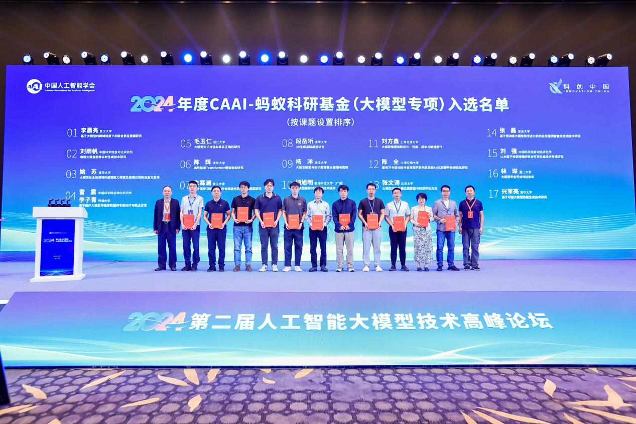 CAAI-蚂蚁科研基金项目名单正式公布后,CAAI副理事长赵春江院士、蚂蚁集团安全实验室首席科学家王维强为入选项目负责人代表颁发了证书。联想研究院高校合作高级经理李跃华介绍并发布了CAAI-联想蓝天科研基金项目。伴随两大科研基金项目的成功开展,将有力推进我国大模型领域前沿技术研究与落地,激发更多自主研发和创新探索。