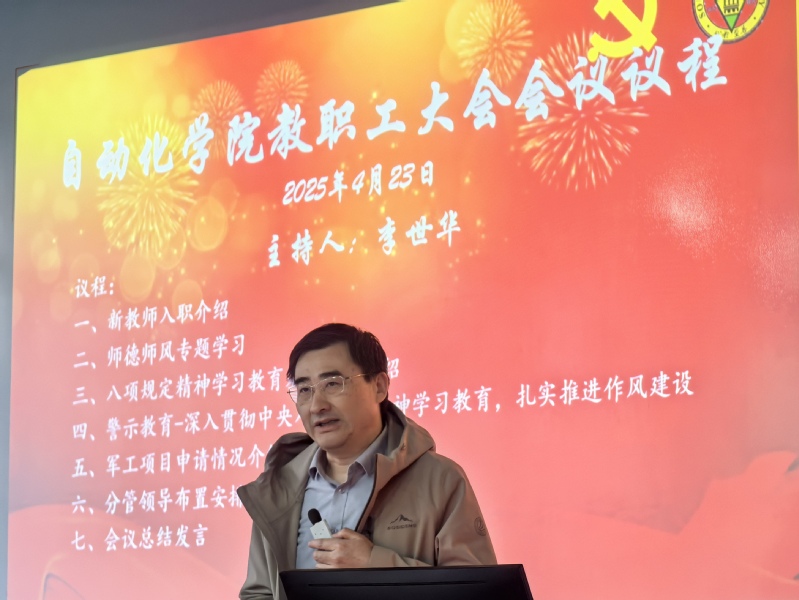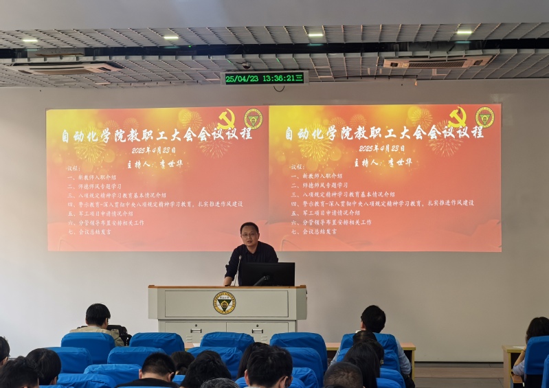 副院长温广辉邀请了学校科研院先进技术与装备办史君超介绍GF项目申请情况。温广辉深刻剖析了学院与国内其它兄弟高校科研力量比较的优势与差距,号召大家为 “强民拓军”的远大目标而奋斗。