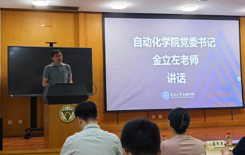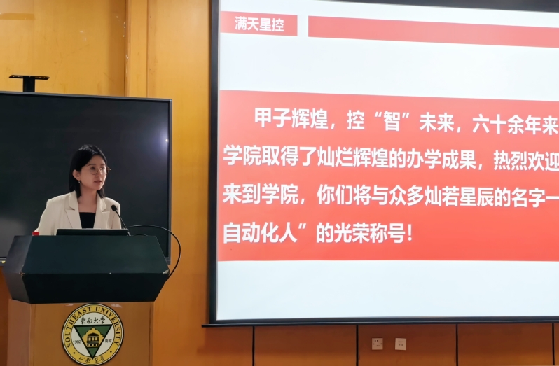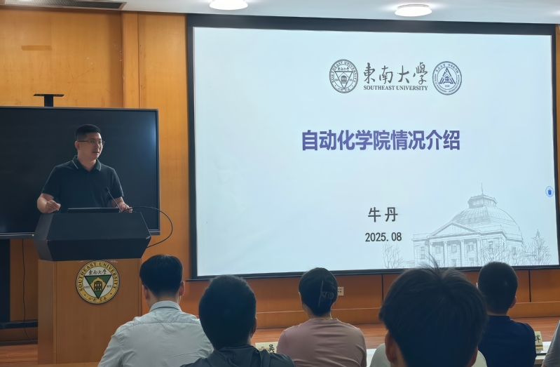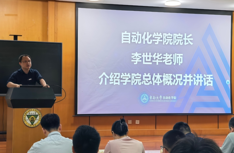 副院长牛丹向新生详解肉漫屋概况 、架构及自动化系、机器人工程系的成绩成果,更巧妙引出学院与“8”的特殊缘分——我院既是东大建校第八系,在全球控制科学领域亦稳居第八,有着深厚学科底蕴与强劲综合实力。身为分管研究生工作的副院长,他同步开展入学培训,推介学院公众号、官网等新媒体平台,并就研究生学习、工作、生活给出具体建议,让新生快速了解学院、融入新环境。