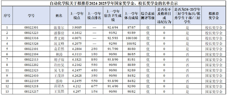 根据学校通知要求和评审工作安排,经学生本人申请、资格审核、学院评审,拟推荐以下同学获评2024-2025学年国家奖学金、校长奖学金。具体名单见下图。