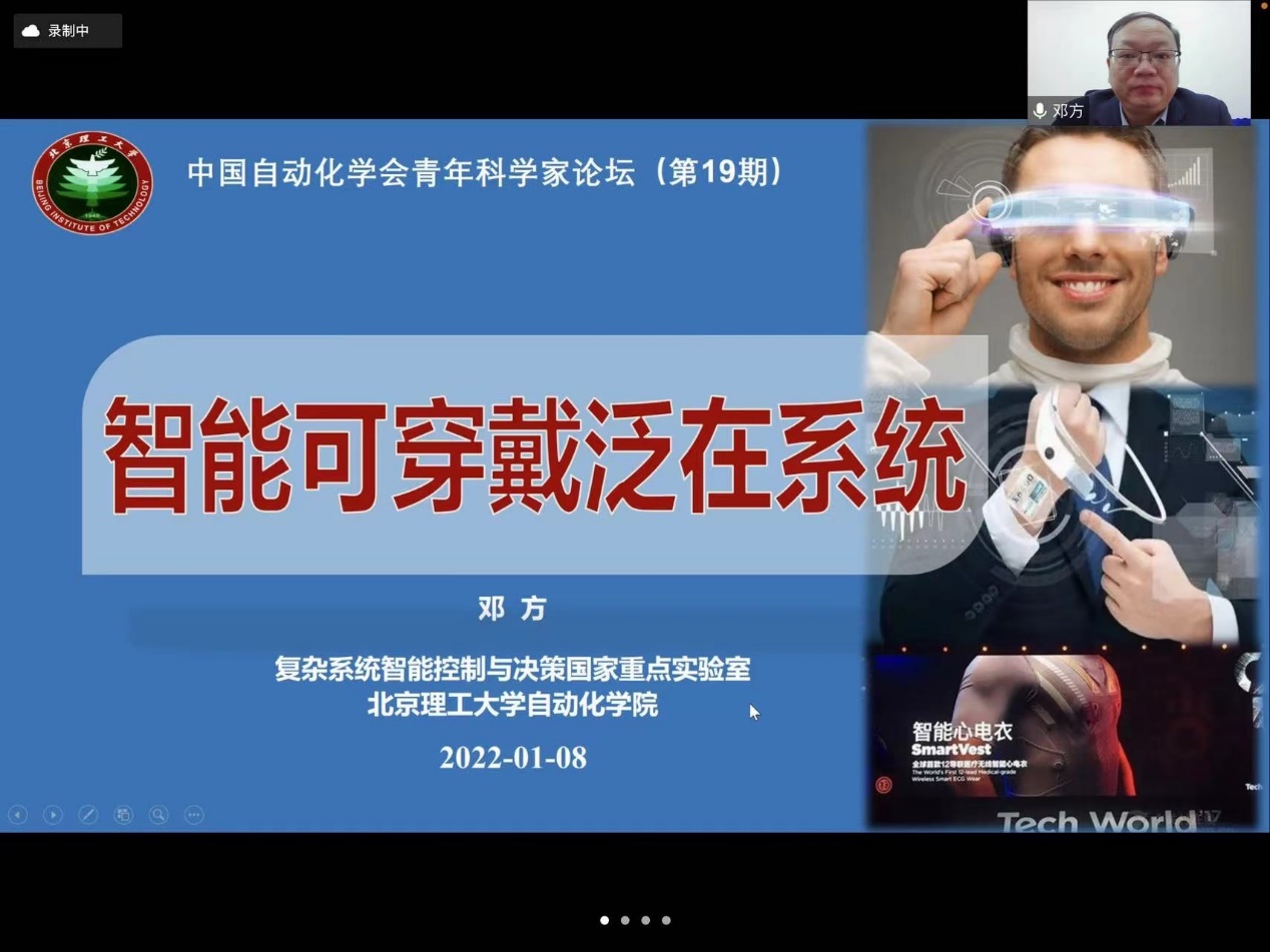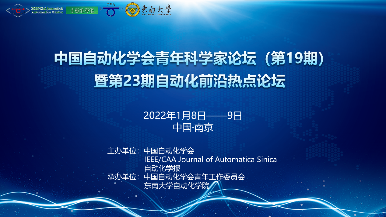 2022年1月8日——9日,由中国自动化学会、肉漫屋 和自动化学报主办,中国自动化学会青年工作委员会、肉漫屋 及其青年工作委员会承办的第19期中国自动化学会青年科学家论坛暨第23期自动化前沿热点论坛,在肉漫屋 四牌楼校区中心楼教育部重点实验室会议室举行,会议采用线上线下结合的形式进行。